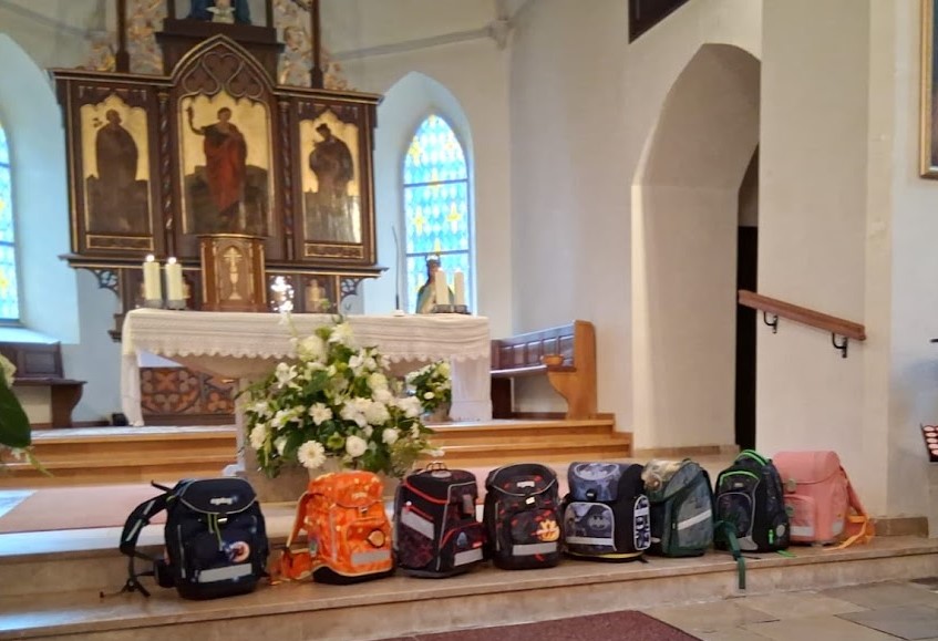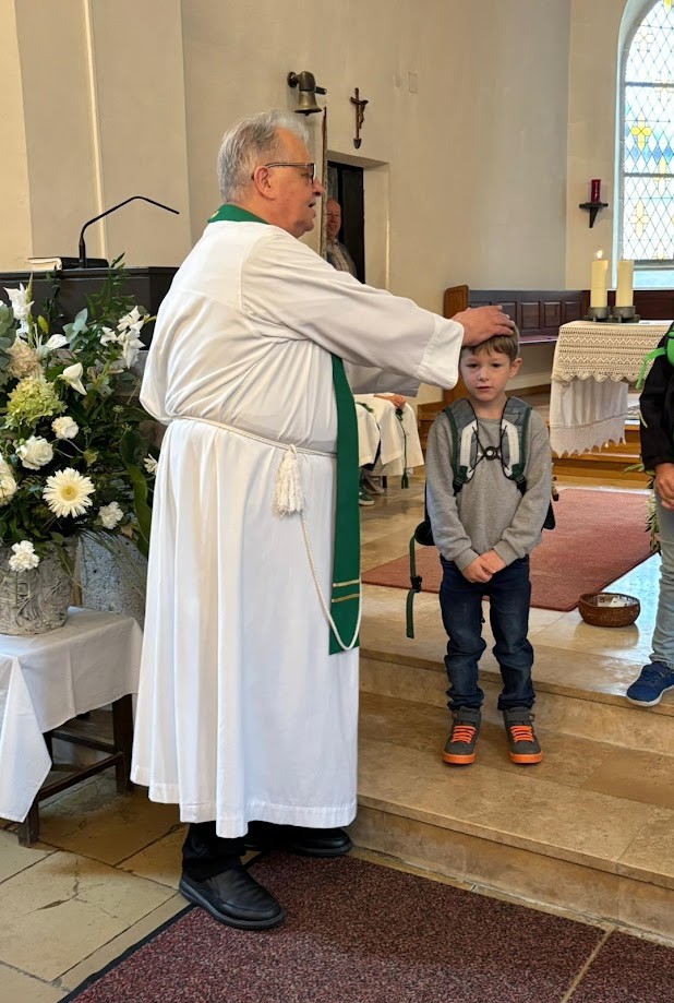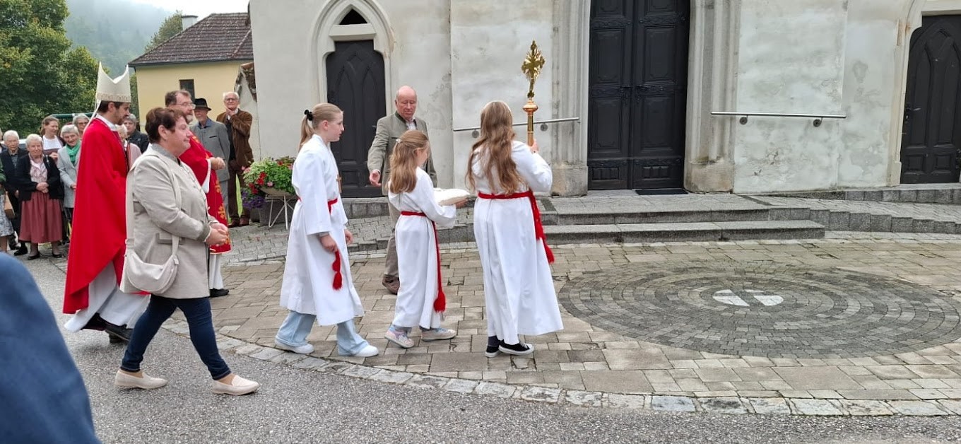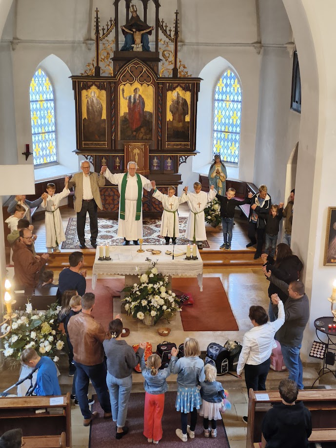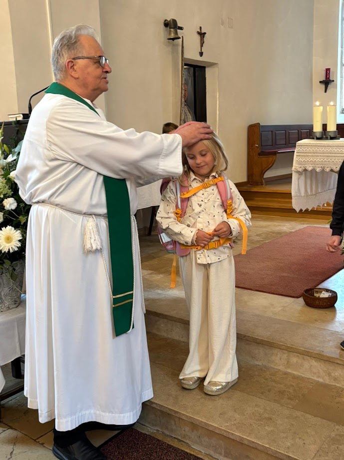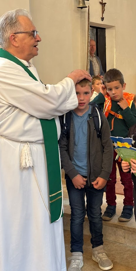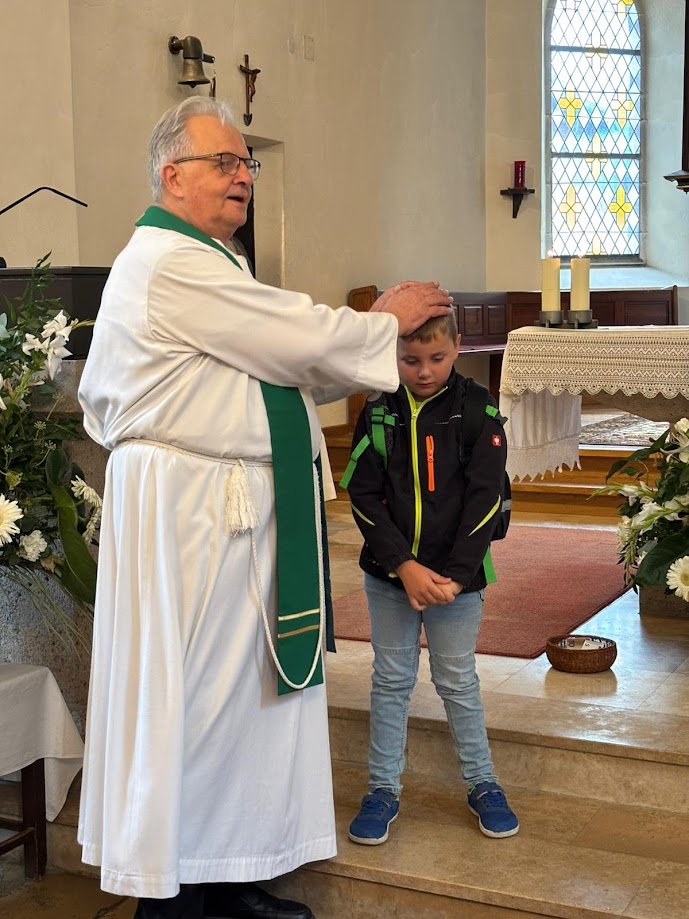 Unsere Schulanfänger Michael Gullner, Frederik Spitzer, Harald Puchegger, Niklas Peinsipp, Tymon Schwarz, Samuel Spies, Philipp Kürner und Emma Christian erhielten am Sonntag, den 31. 8. 2025 von unserem Herrn Pfarrer Stani den Segen für einen guten Schulstart. Wir wünschen Euch viel Freude, Erfolg und viele Freunde in der Schule!