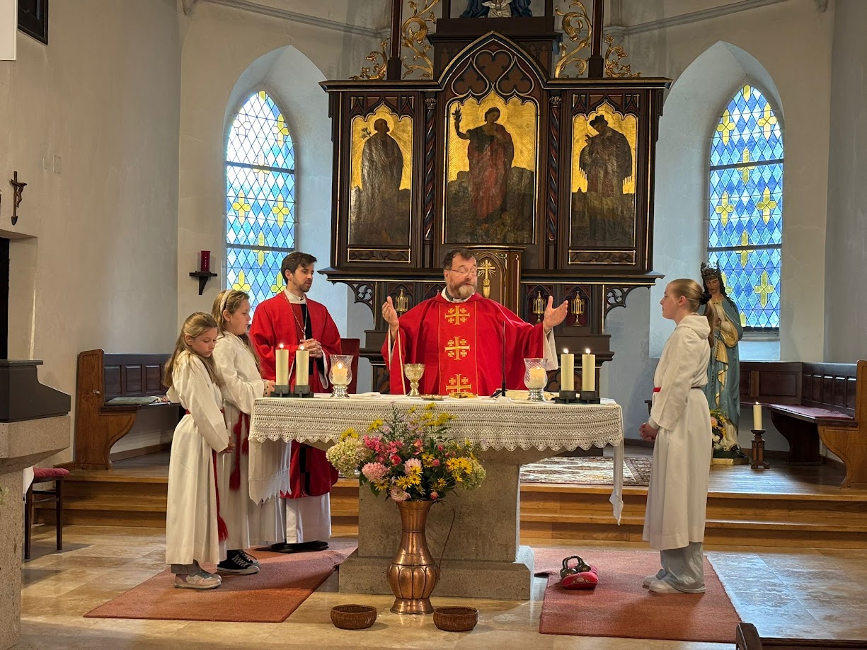Am Sonntag, den 22. Juni 2025 feierten wir bei strahlendem Wetter das Fronleichnamsfest. Die Prozession wurde musikalisch begleitet vom Musikverein Scheiblingkirchen-Warth-Bromberg. Vielen Dank an Alle, die mit uns gefeiert haben, die Altäre, die Kirche und den Blumenteppich geschmückt oder gestaltet haben. Im Anschluss war Agape, durchgeführt von unserer Jugend.