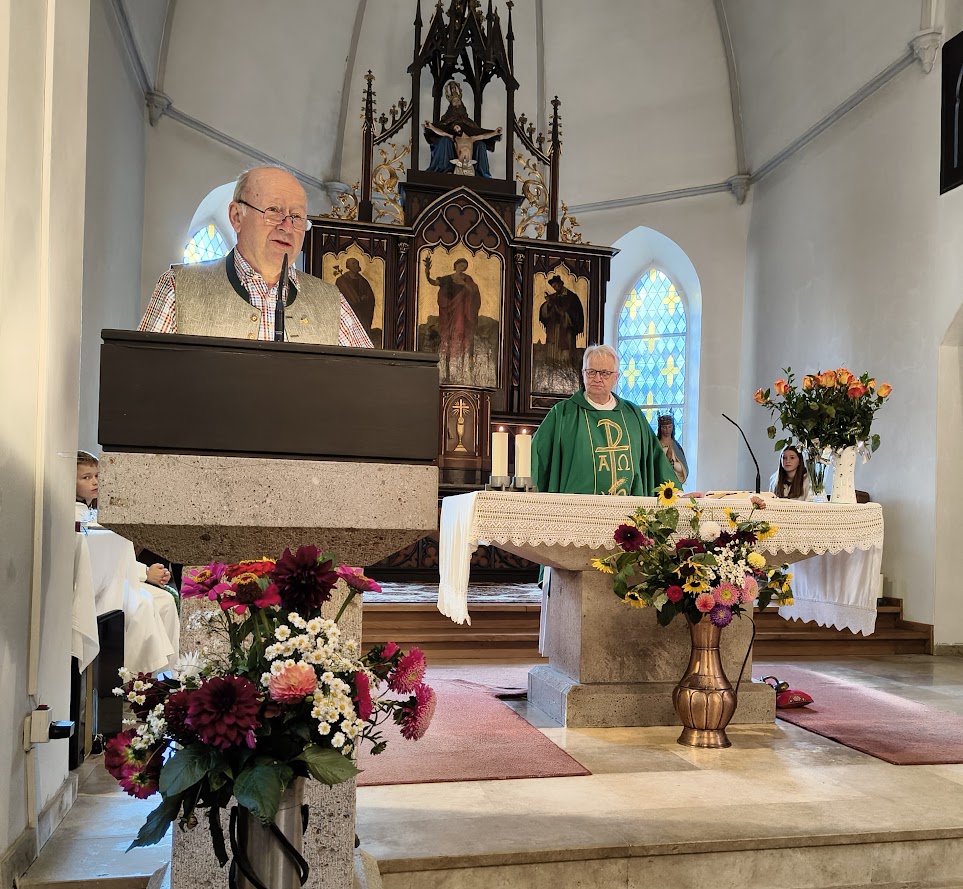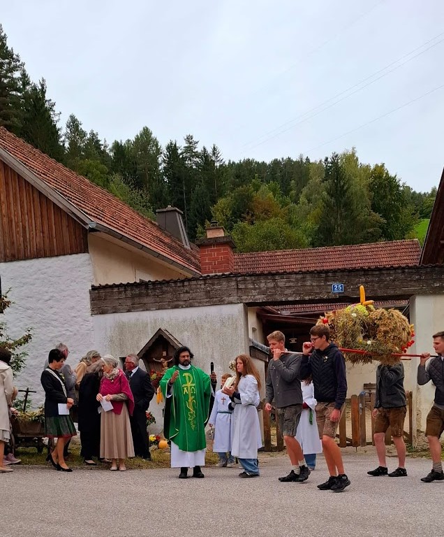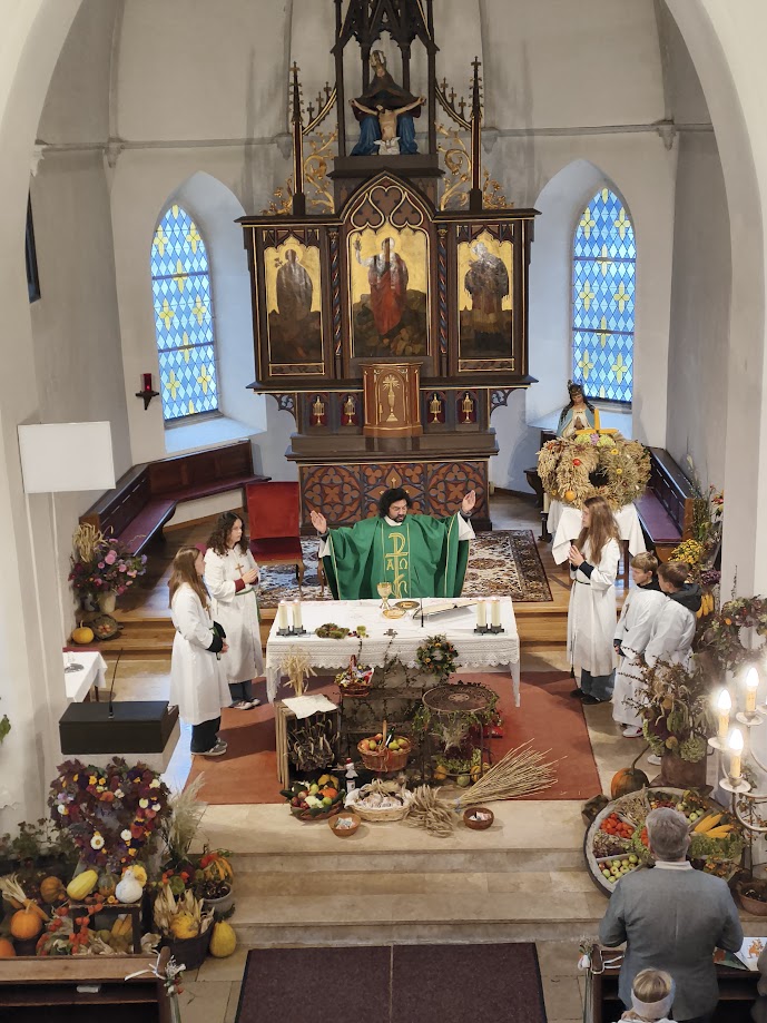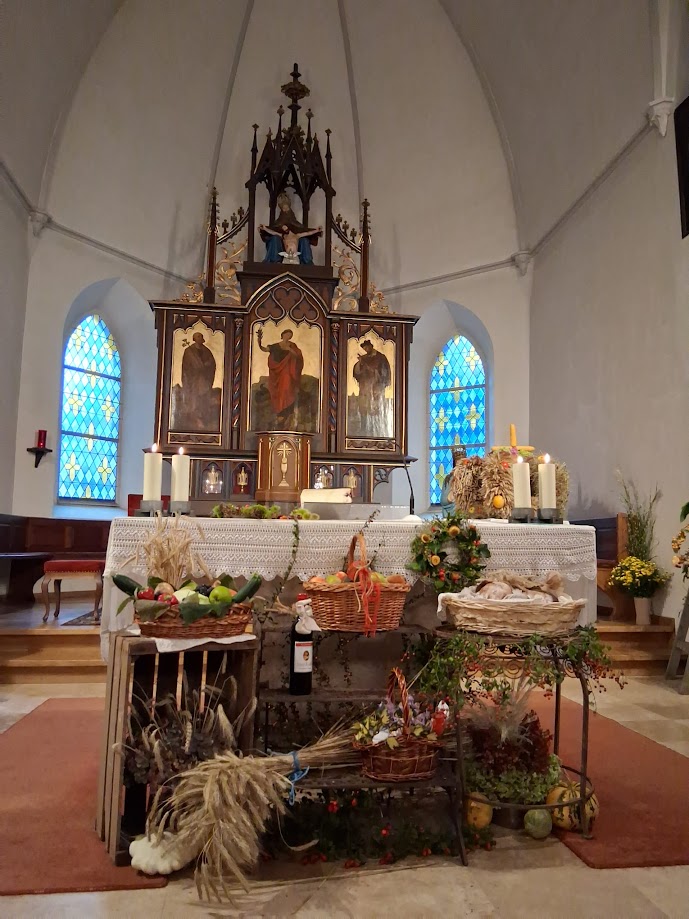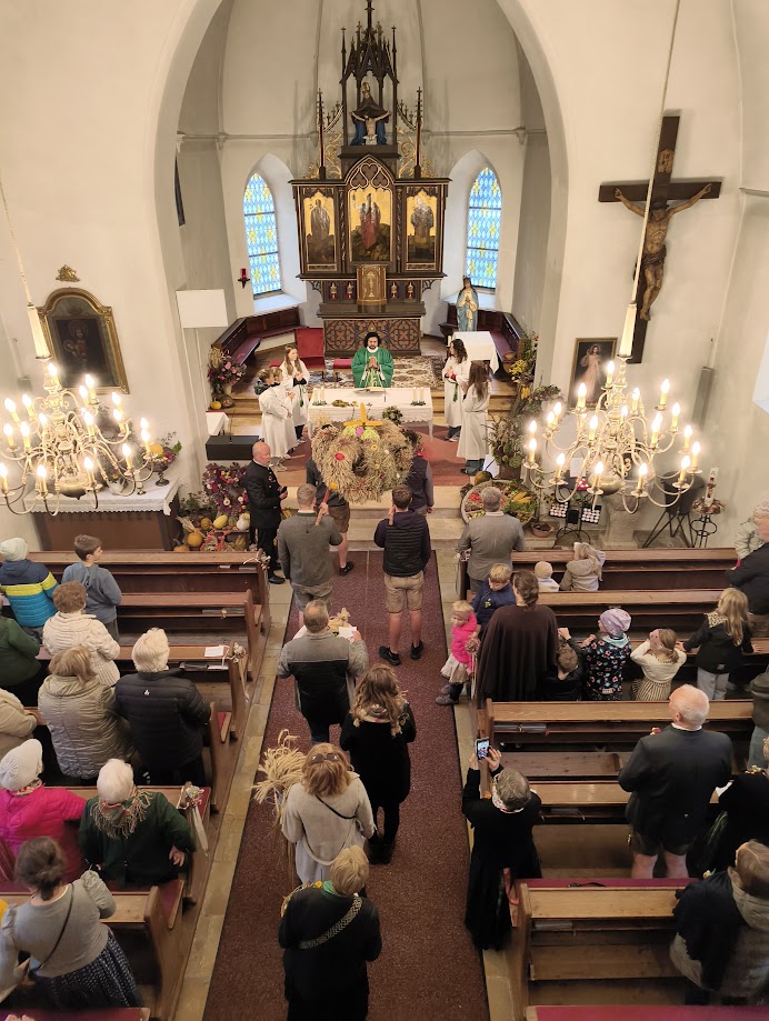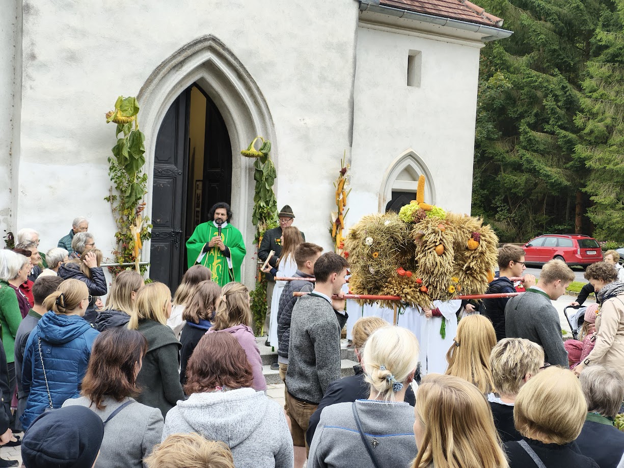 Am Sonntag, den 5. Oktober 2025, feierten wir unter Teilnahme sehr vieler Pfarrangehöriger und Kinder unser Erntedankfest. Mit der Erntekrone und den Erntegaben ging die Prozession zur Mühle und im Anschluss feierten wir in unserer wunderschön geschmückten Pfarrkirche den Dankgottesdienst. Dieses Jahr brachte die Rotte Kulm die Gaben zum Altar und dankten für das Gedeihen der Früchte. Im Anschluss waren alle herzlich eingeladen zur Agape der Jugend!